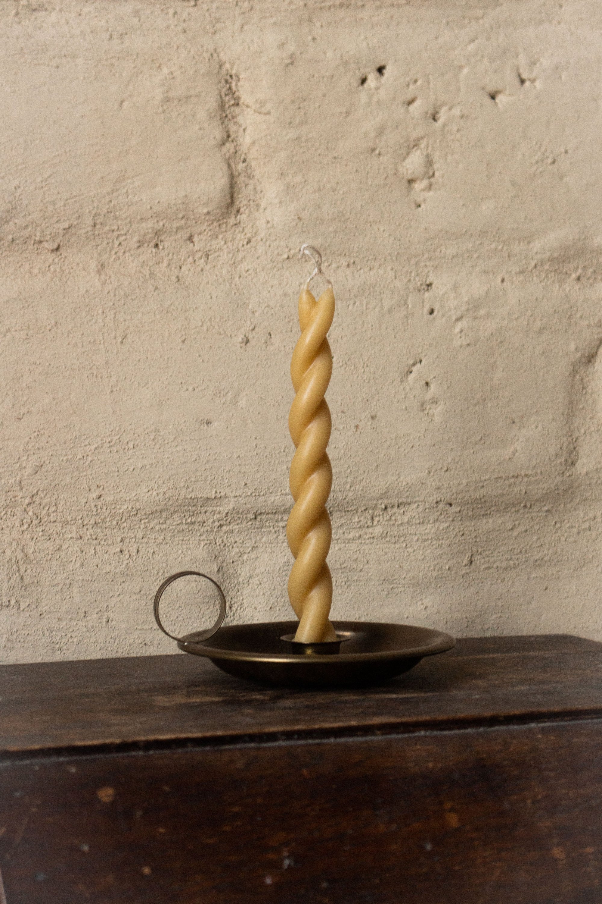 The Twisted Taper is made by creating two separate candles and twisting them together while the wax is still warm and pliable. Light both wicks and watch as they gradually untwist around one another.